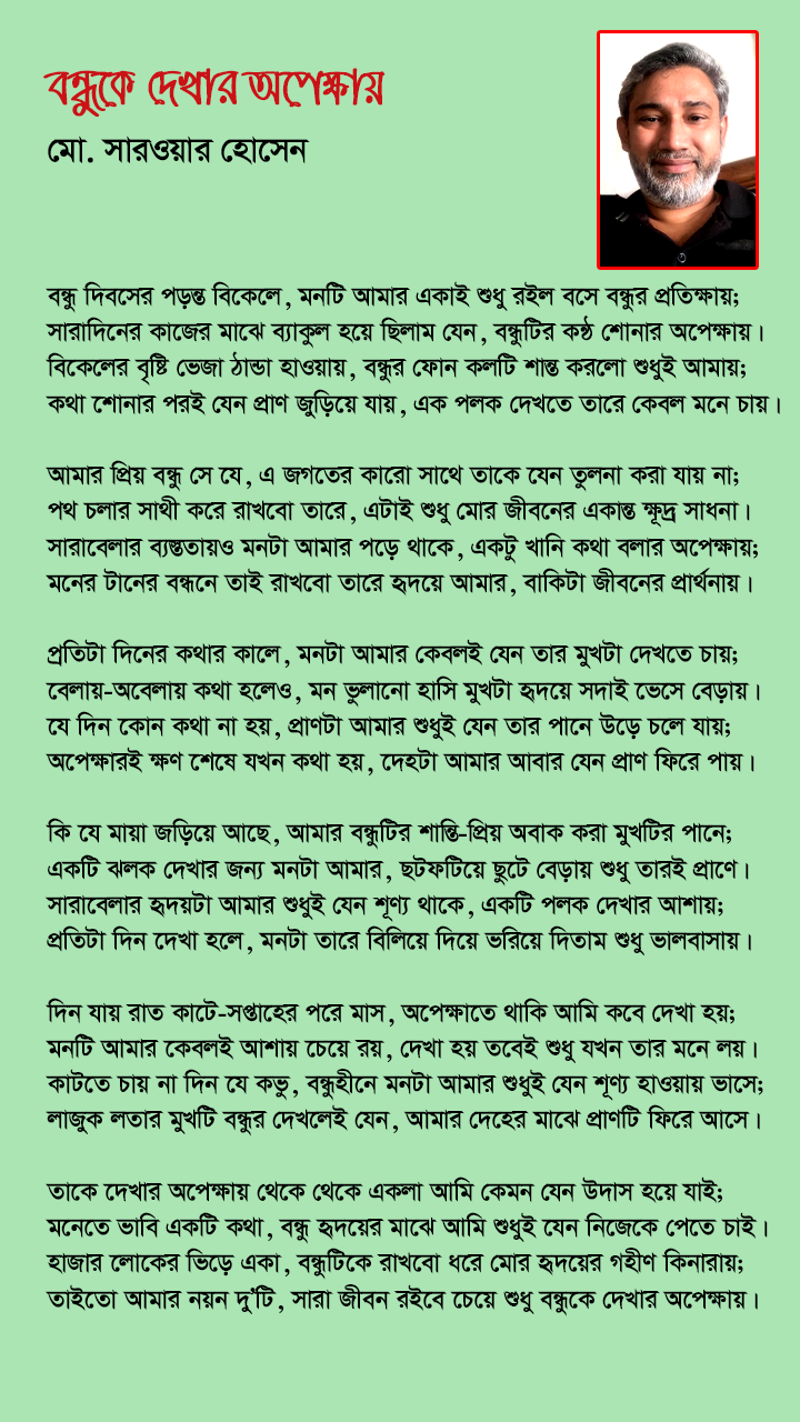 সারওয়ার হোসেন এর কবিতা: বন্ধুকে দেখার অপেক্ষায়