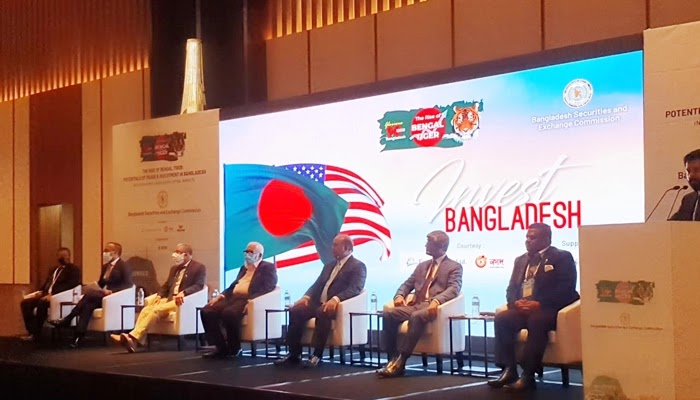 শুক্রবার (৩১ জুলাই) যুক্তরাষ্ট্রের লস অ্যাঞ্জেলেস বাংলাদেশ সিকিউরিটিজ অ্যান্ড এক্সচেঞ্জ কমিশন আয়োজিত ‘দ্য রাইজ অফ বেঙ্গল টাইগার: পটেনশিয়াল অফ ট্রেডে অ্যান্ড ইনভস্টেমন্টে ইন বাংলাদশে’ র্শীষক রোড শোতে বক্তারা এ কথা বলনে। বিদেশি বিনিয়োগকারী, প্রবাসী বাংলাদেশি এবং সরকারের অর্থনীতি সংশ্লিষ্ট নীতিনির্ধারকরা এই রোড শো তে উপস্থিত ছিলেন।
